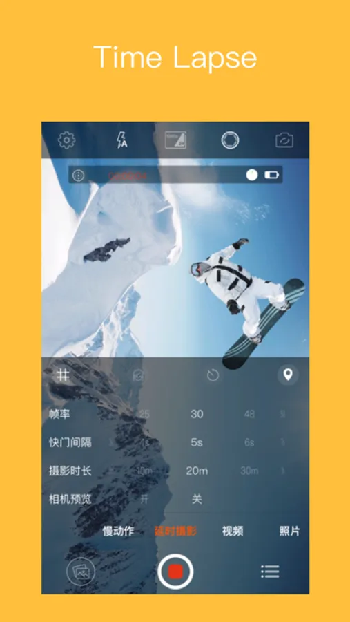2. Time-lapse ---- Support 24~60 different frame rate settings, adjust the shutter interval and set the automatic shooting time