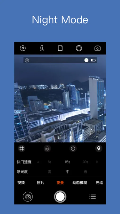 5. Night mode-- Supports 1s, 2s, 4s and other slow shutter speed settings