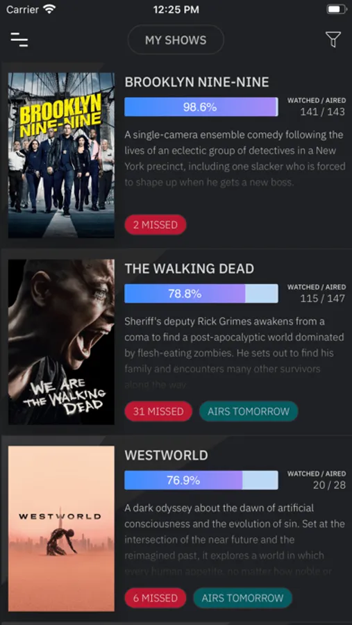 >> Keep track of missed or upcoming episodes