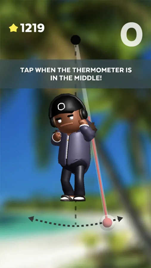 Tap when the thermometer reaches the middle to keep the man cool, otherwise his jacket gets taken off, and this man can never be hot!