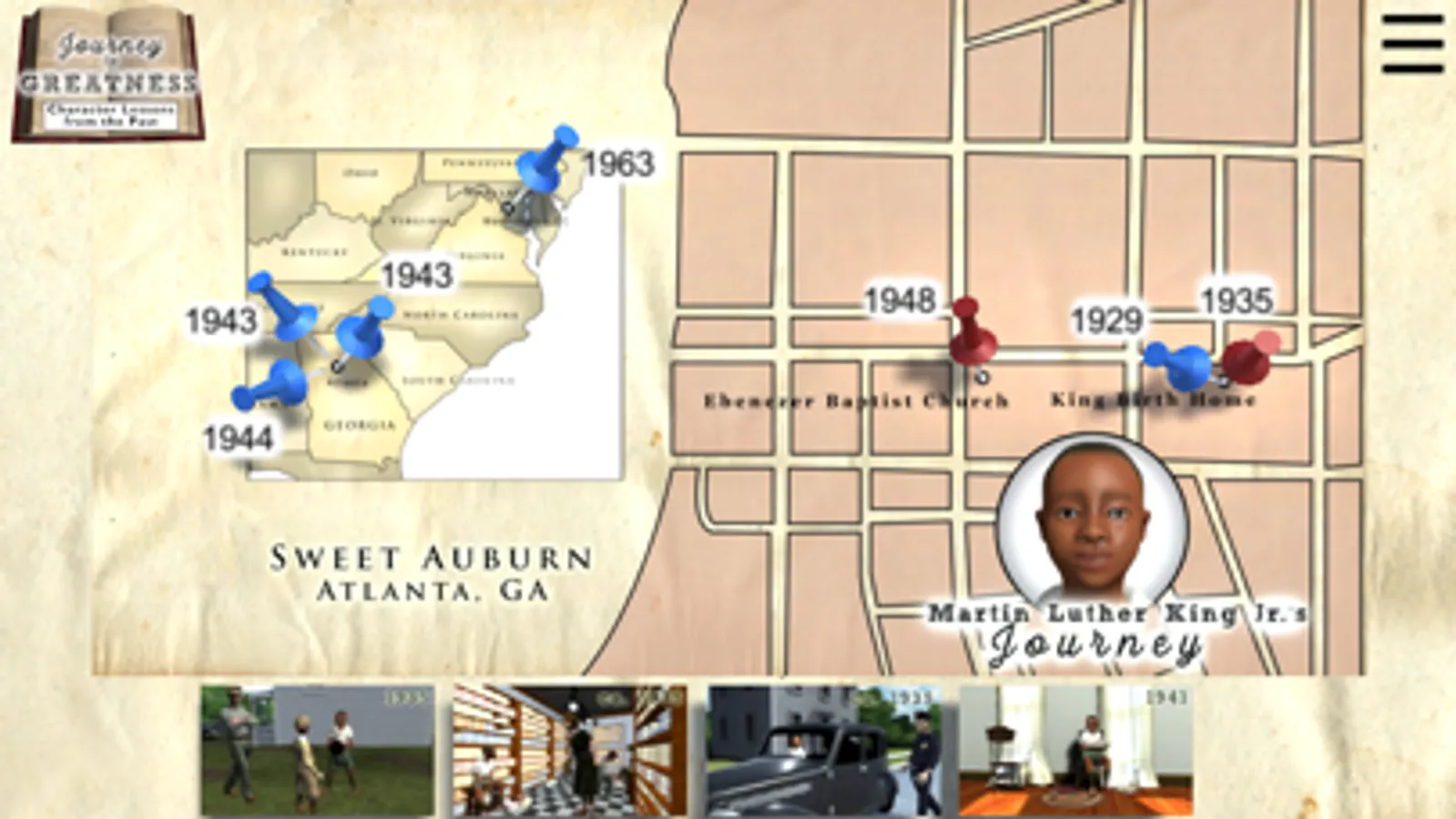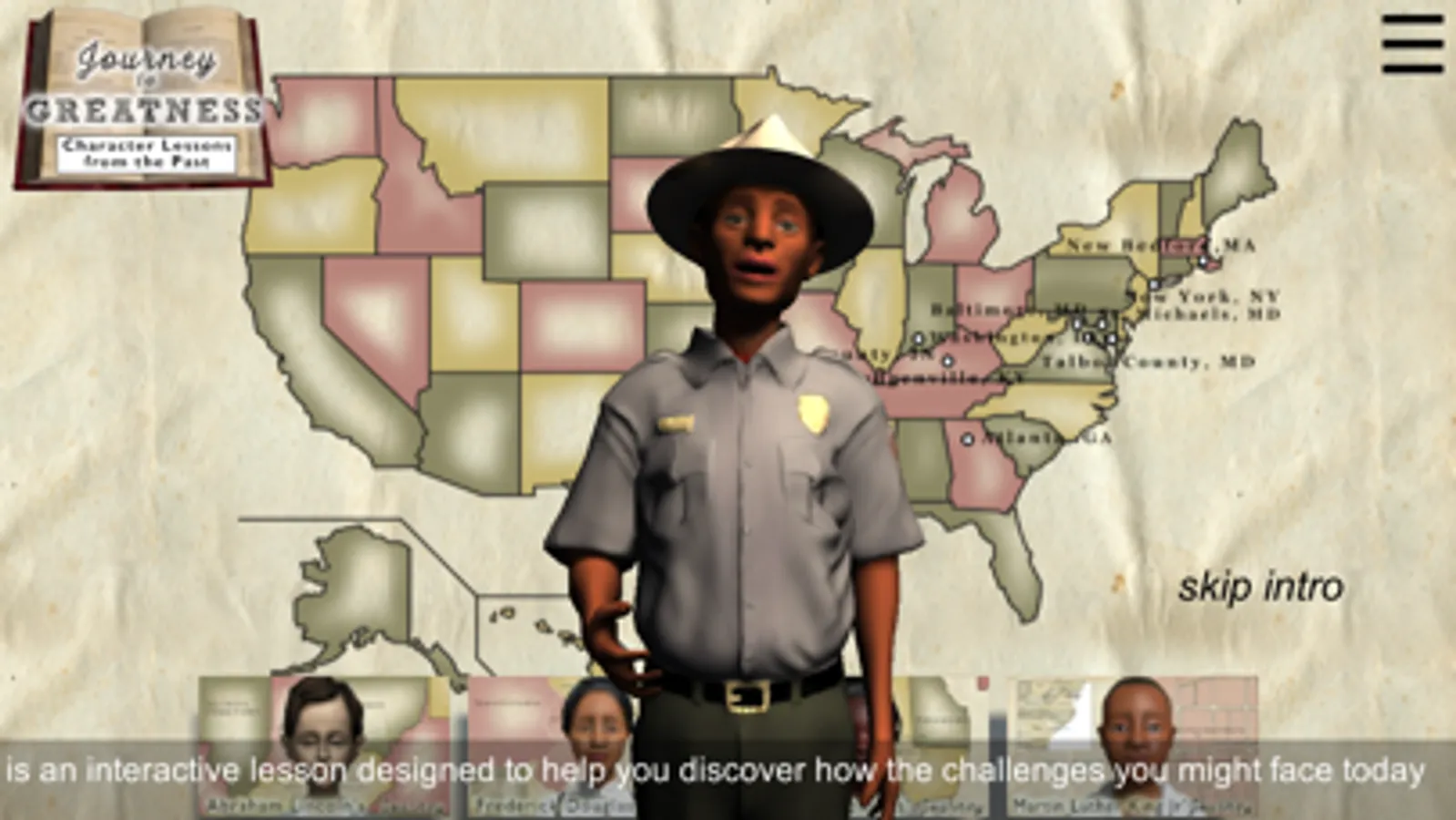 "Journey to Greatness: Character Lessons from the Past" is an interactive lesson designed to help students discover how the challenges they might face today, such as fear, prejudice, poverty, not fitting in, or anger, can be overcome by learning how heroes from our past, Abraham Lincoln, Frederick Douglass, Harriet Tubman, and Martin Luther King, Jr., overcame similar challenges when they were young.