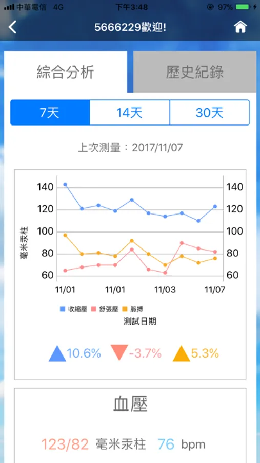 2.查詢紀錄:隨時使用APP查詢您的量測記錄,隨時注意自己的血壓變化。