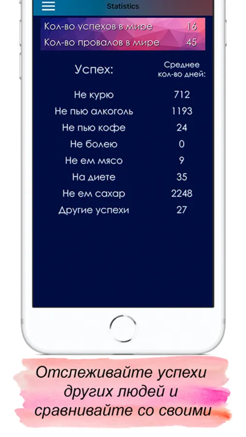 Success counter покажет тебе статистику об успехах других людей. Ты всегда можешь сравнивать успехи и добиваться большего.