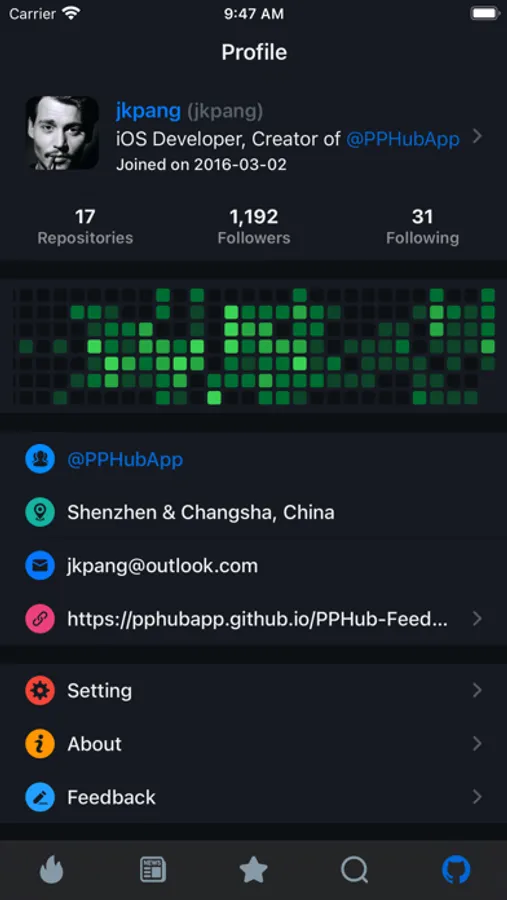 If you have any suggestions or bugs, you can inform me through the feedback function of APP or go directly to https://github.com/jkpang/PPHub-Feedback to ask me questions.