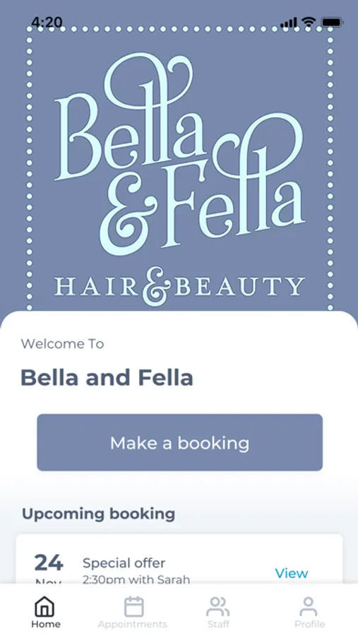 The Bella and Fella app makes booking your appointments and managing your loyalty points even easier. You're just a few taps away from feeling good and looking great!