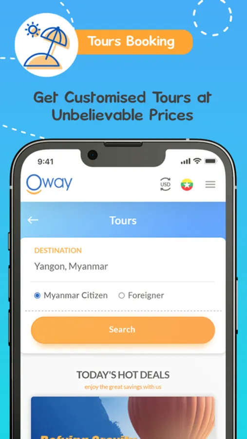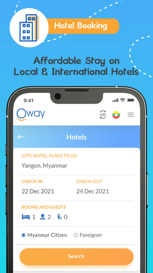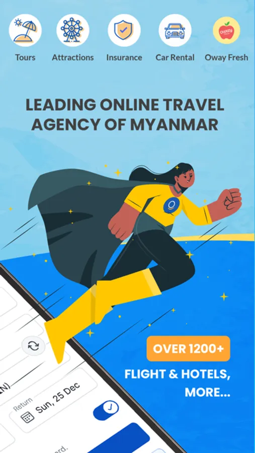 Explore the World with Oway! Plan your dream trip to Myanmar and around the world with Oway’s free travel application. Save on domestic and international airfares, hotels and tour packages. Focusing on both Myanmar and International travellers, Oway’s application is available in Myanmar and English languages and accepts both US Dollars and Myanmar Kyats.