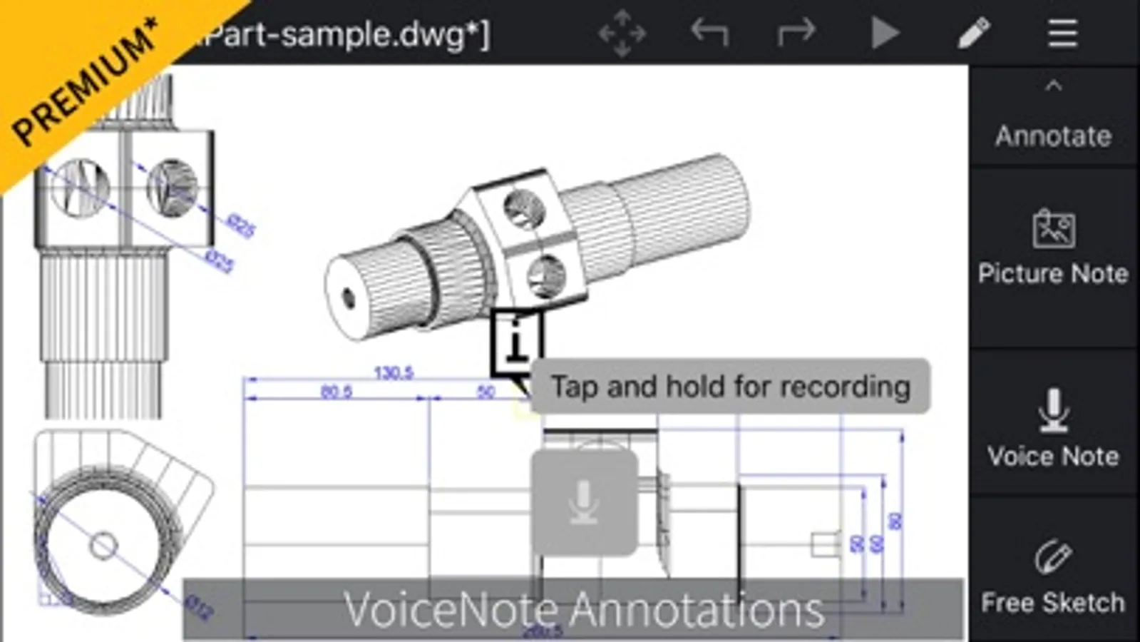 Add, change or edit important project details on-site, such as confirming measurements, revising key data or including text notes. With the unique annotation features, PictureNote* and VoiceNote*, you can take a picture from the camera of your mobile device or record your voice and pin the recorded note to the right place in your drawing.