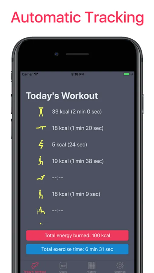 AutoWorkout is the app that tracks your workouts automatically. It recognizes exercises, calculates exercise time and provides detailed statistics for each exercise including calories burned – all these using sensors of your Apple Watch.