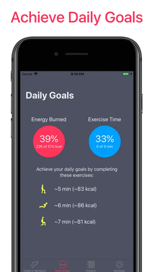 Need an inspiration in achieving your activity daily goals? Check the “Daily Goals” screen with your current progress and the list of exercises which will help you to close your activity rings as fast as possible.