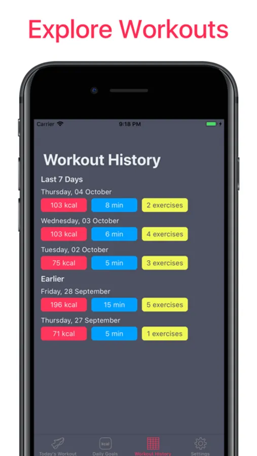 All your efforts count – “Workout History” screen will summarize all your past achievements. And if you allowed AutoWorkout access to Apple Health, it will contribute calories burned and exercise time after you finish the workout.