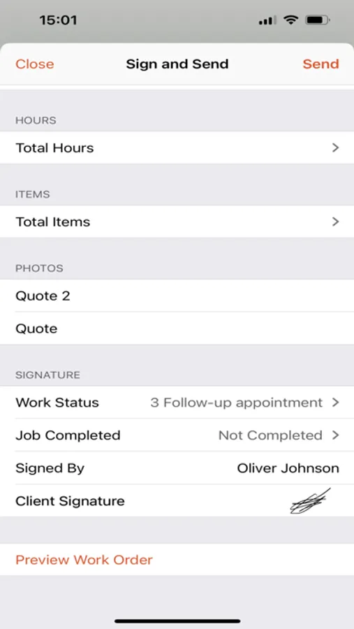 OutSmart is the digital generic solution for replacing the paper work order, for companies who wants to start with setting up a more efficient field service. On the work order you register your hours and articles. You can add photos of your work (for example before and after) and your customer will sign a digital signature below. Directly on the smartphone or tablet. We will ensure that the receipt is sent to your client as a PDF. Simple and effective.