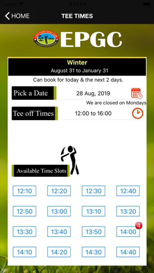 This is a golf app to do Tee time slot booking for members of East Point Golf Club (EPGC), Mudasarlova, Visakhapatnam.
