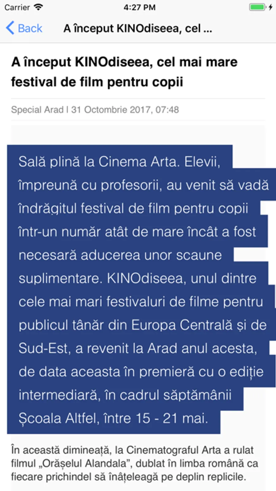 Aplicația te ține la curent cu articole unele dintre cele mai importante categorii ale site-ului: știri locale și naționale, campanii, cultură, politică, pamflete, investigații, international etc. Aplicația se actualizează automat, astfel că vei fi conectat non-stop la tot ce se întâmplă important în Arad.