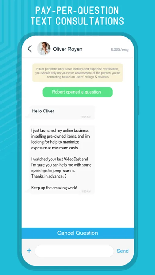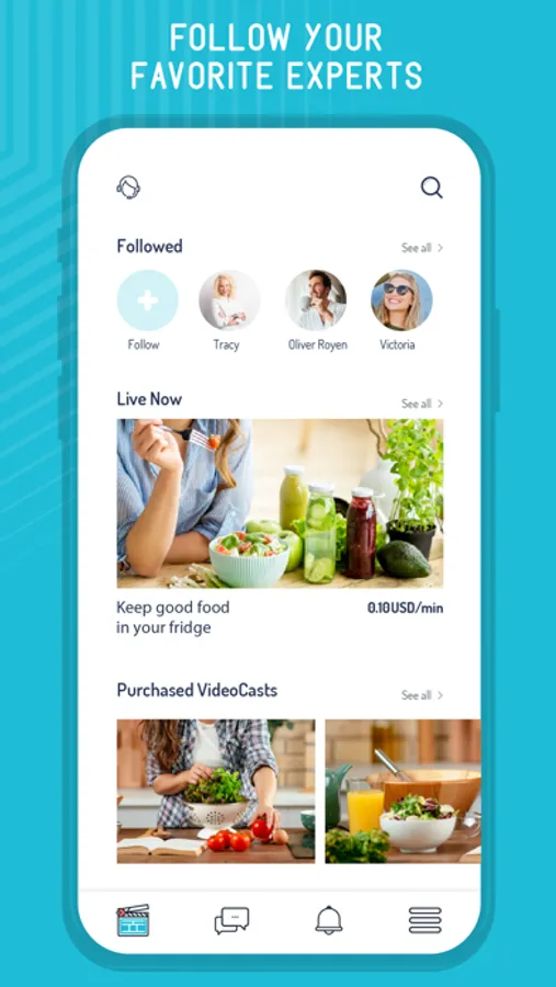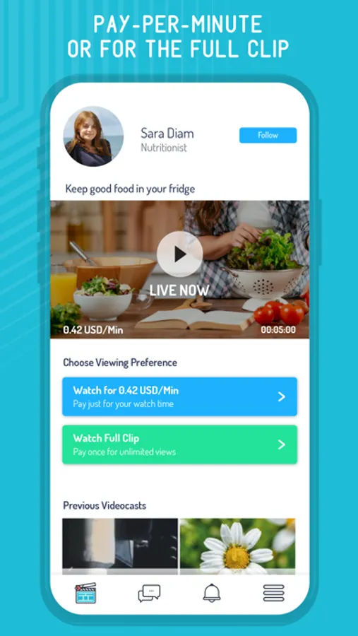 - Pay per minute for watching your Expert’s VideoCast or pay once for their full clip