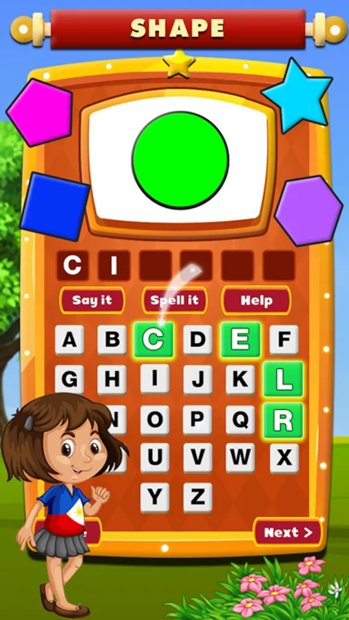 'Help' button hides the unneeded alphabets on the keyboard, so the children only see the alphabet that makes the spelling. That way they know what letters make the word