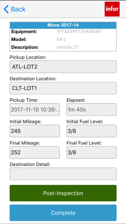The HxGN EAM Asset Move app allows for the moving or transfer of assets from one location to another. The user can review and complete an existing move already in progress or create a new asset move. This app can be used for many types of assets but is ideally suited for vehicle assets. The app does support barcode scanning.