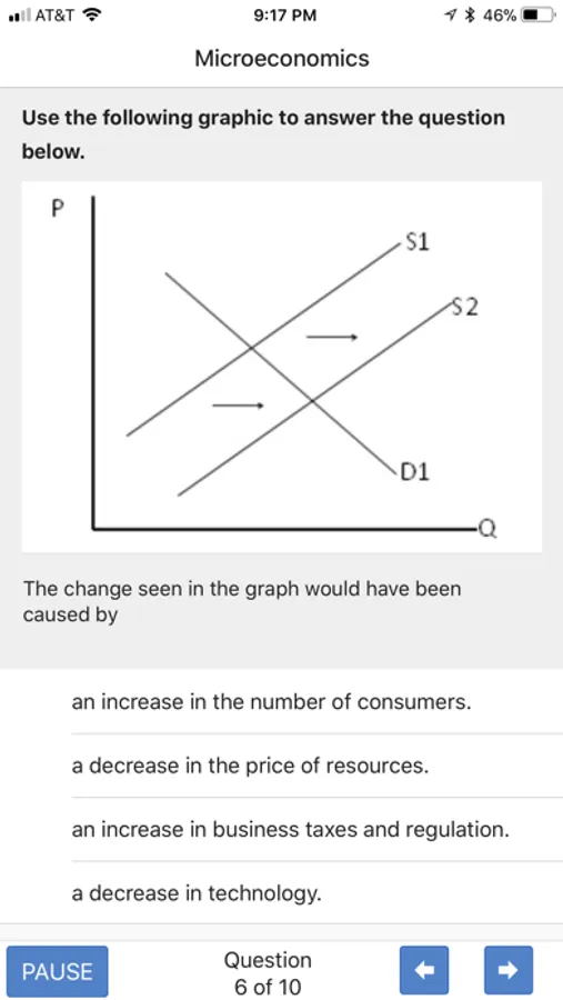The app includes a variety of question types including analysis of readings, graphs, data charts, and questions that require students to synthesize the effects of a change on multiple variables. The questions are tightly aligned with the Georgia Standards of Excellence for Economics and reflect the types of questions students are likely to see on the Economics End of Course Test.