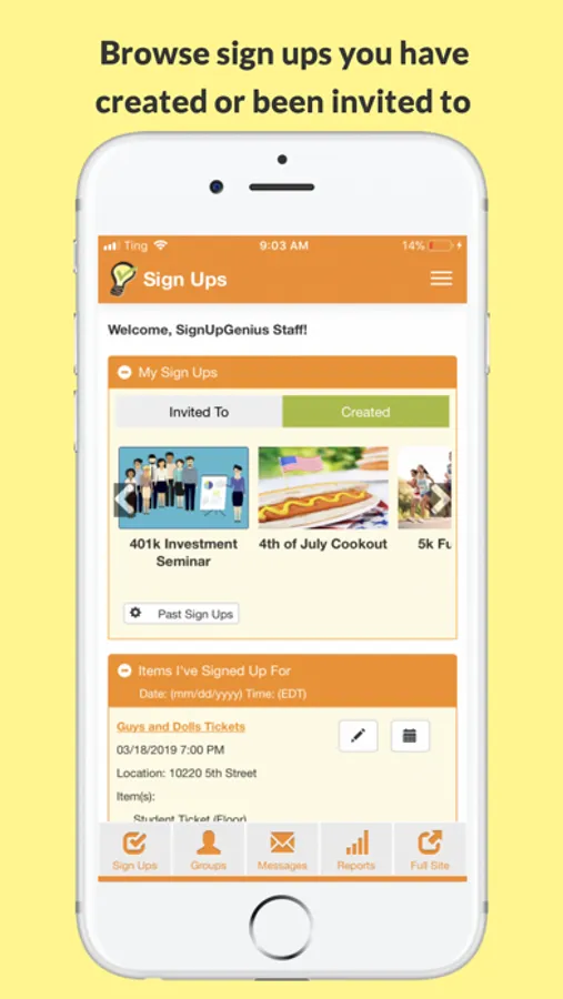 SignUpGenius is the most popular online sign up service to organize group events. Sign up for events, message group participants and view event statistics from the app. Use SignUpGenius to simplify the process of coordinating events and people with sign ups for nonprofits, schools,
