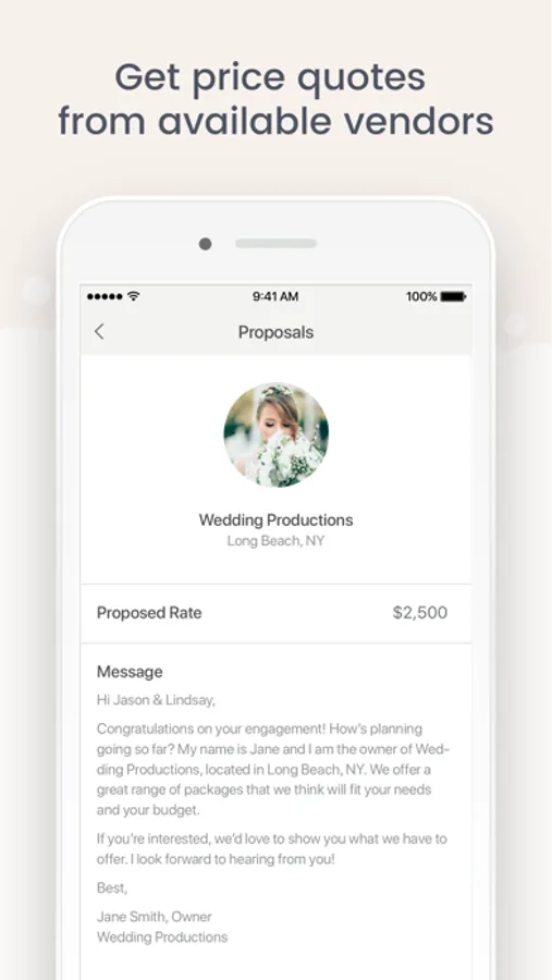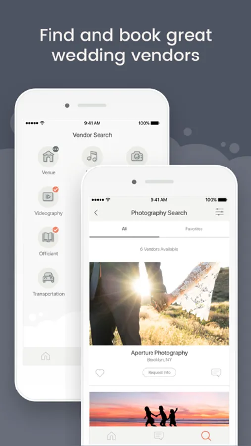 * Request dates and pricing from vendors with one click, then get notified when a vendor responds