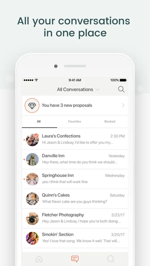 * Chat with any Planestry vendor using our built in Conversations messenger
