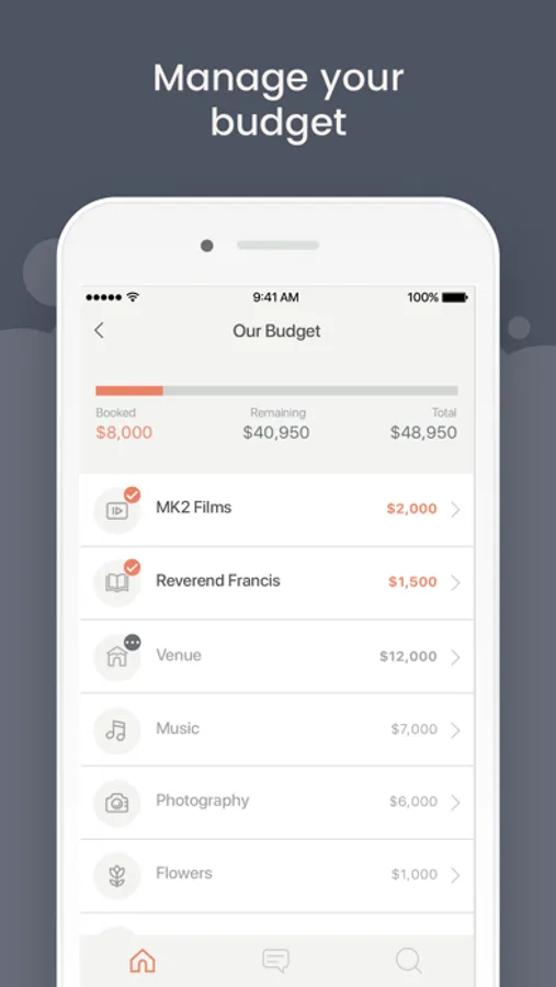 * As you lock in rates with your booked vendors, your budget will update to keep you on track