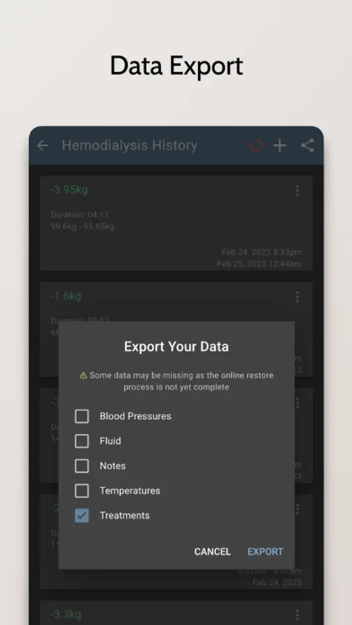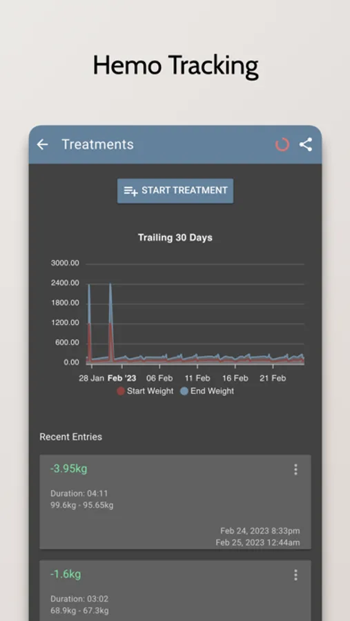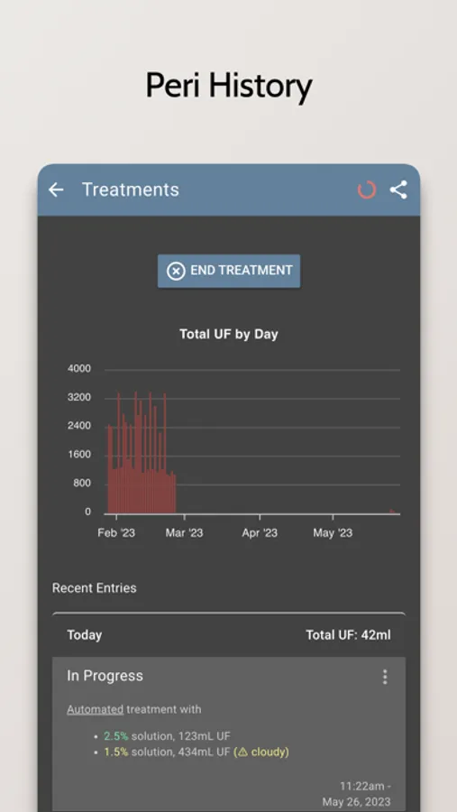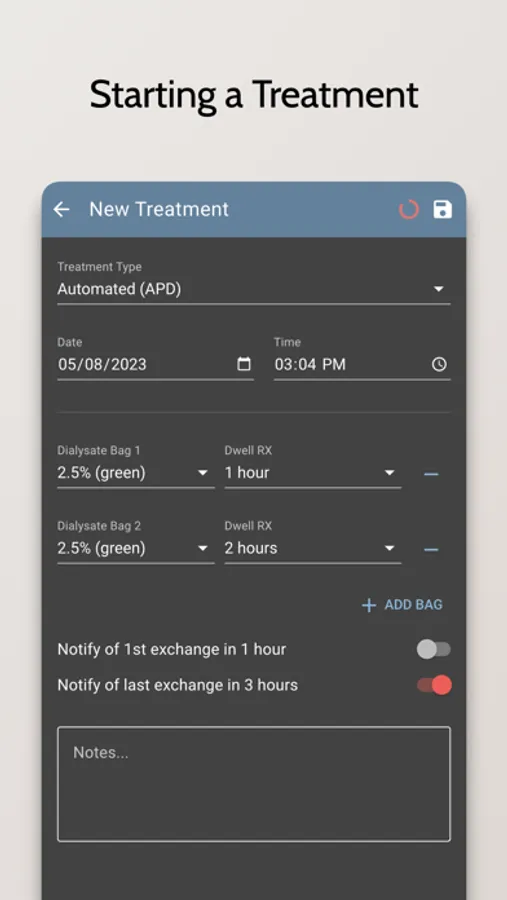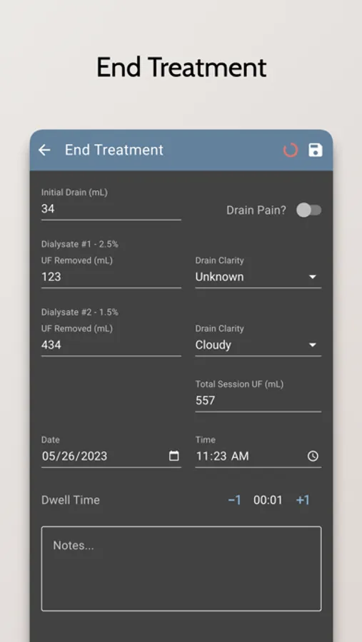 - Record and track your dialysis treatments, including the type of treatment, the duration, and any additional notes
