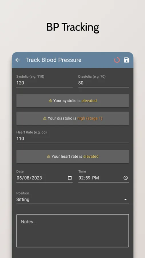 * Track blood pressure