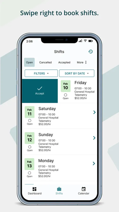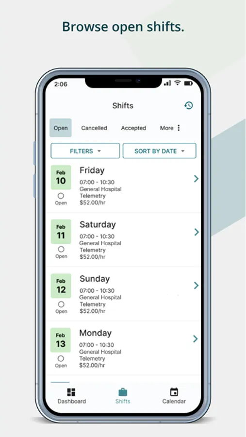 If you haven't already, visit Shifts.com to sign up. A recruiter will be in touch to get the process started. Once you're fully credentialed and ready to pick up shifts, you can use the Shifts app to browse current openings and book the shifts that work for you!