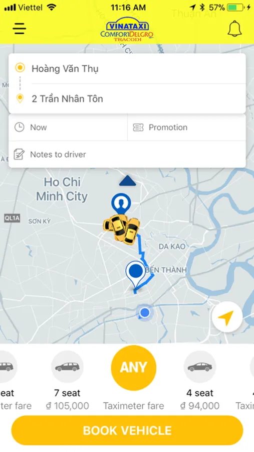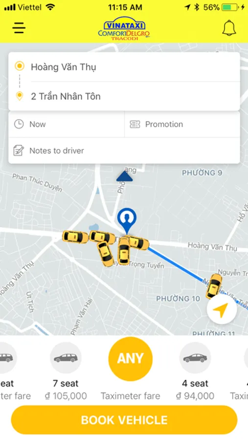 VinaTaxi App is the taxi booking application of Viet Nam Taxi Ltd, Company (VinaTaxi or yellow cab) assists passengers to book taxi rides conveniently and effectively besides others channels such as calling to Call Centre, taking taxis at the Pick-up-Points, waving taxis on the roads…