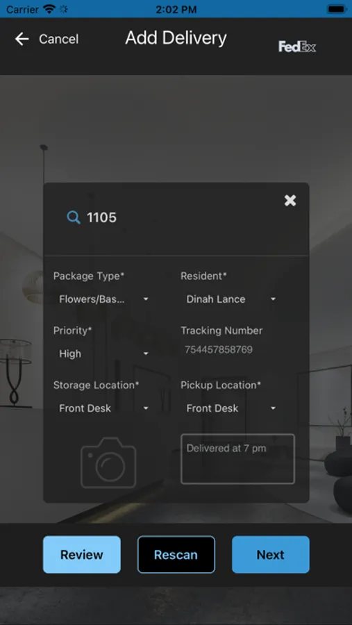 Yardi SmartScan Technology with Optical Character Recognition, takes a picture of the package label and let us do the work.