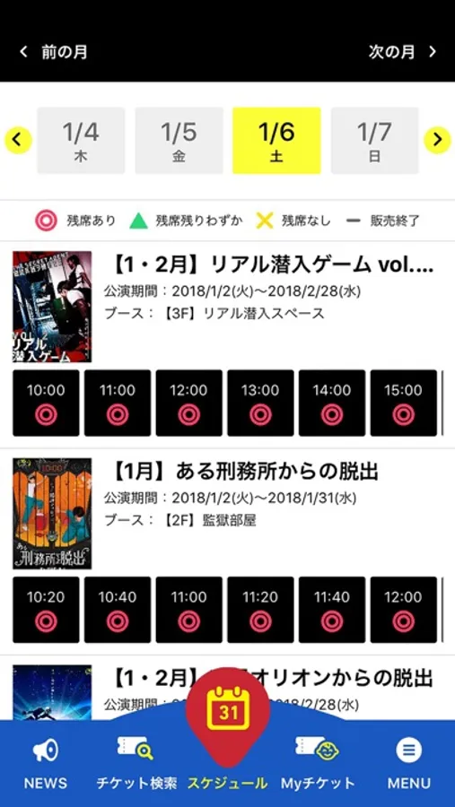 当日券情報や今後のスケジュールがすぐ一覧できます。行きたい日時を選んでスムーズに予約も可能!