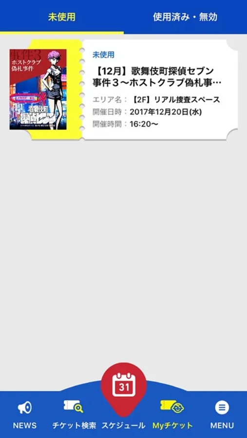 会場でアプリのチケットページを見せてラクラク入場。過去参加したイベントもいちらんできます。