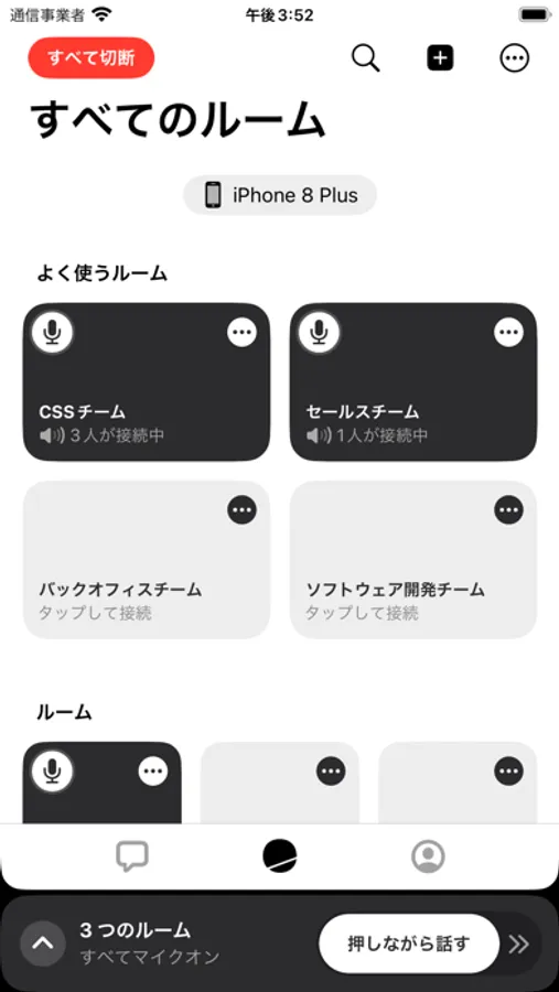 同時に複数のルームの会話を聴いたり、複数のルームに話しかけることができます。それぞれのチームで何が起きているのかを瞬時に把握できます。