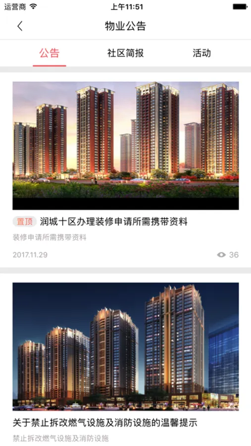 润城给住户传达最新社区信息、房屋信息等,更有更多社区生活服务等着您。