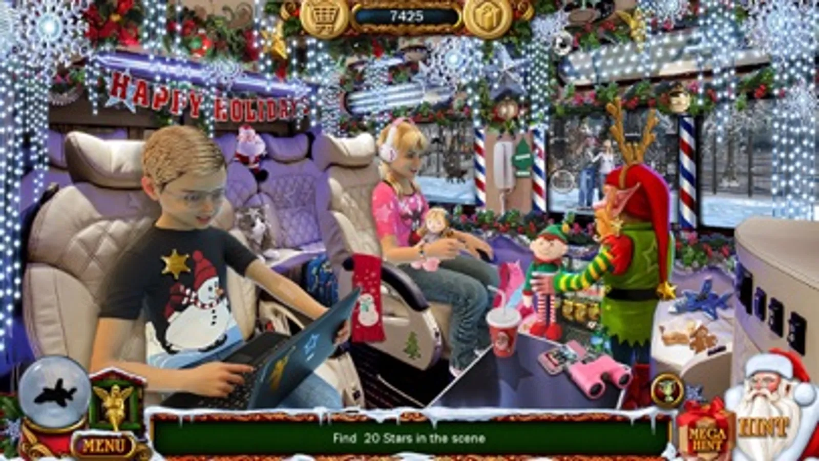 Christmas Wonderland is crammed full of fabulous Presents and Hidden Surprises with lots of Gorgeous Graphics and Puzzles for ALL the Family to enjoy. Find Golden Angels, win awesome Rewards and Achievements. Visit Santa’s Grotto, win a trip to Santa’s North Pole Wonderland. Ride Santa’s Airport Limo and the Santacopter. Visit Santa’s Warehouse, Workshops, Sleigh Barn and the Elf Dorm. Put together a Nativity display in the Church and superb Christmas Scenes. Decorate the House, visit Springfield’s brand new Theater and Tex Mex Diner. Drive up to see Grandma & Grandpa in their Pinecreek Hills Holiday Log Cabin. Suddenly it’s Christmas Eve and Santa’s on his way. The Kids are fast asleep, or are they? … and soon it’s another fantabulous Christmas Morning.