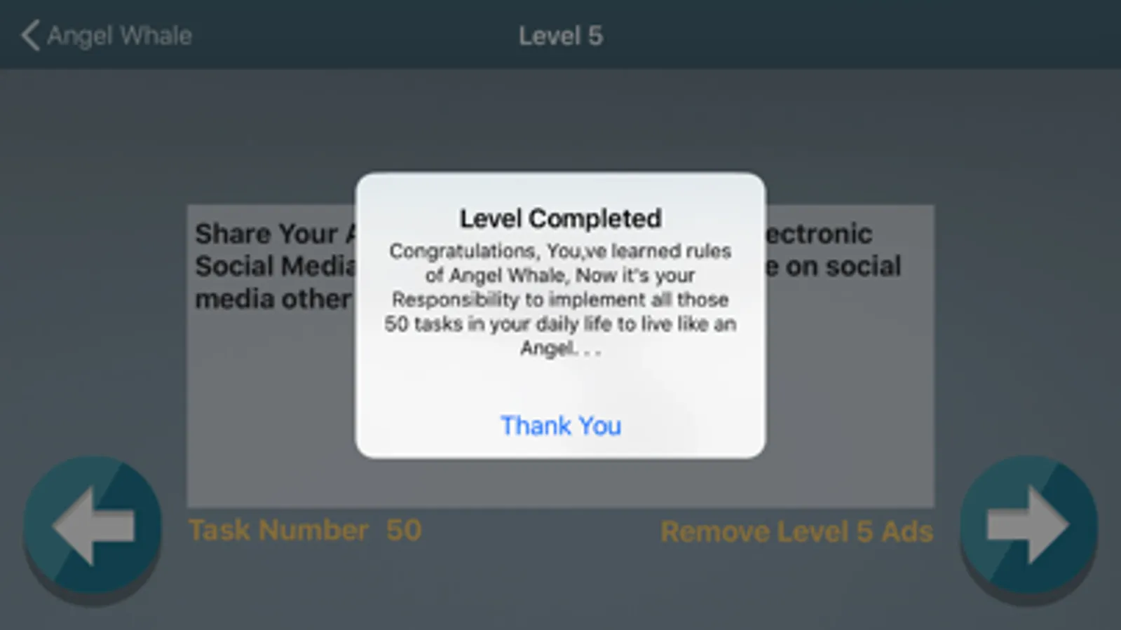 There are 5 Levels and each Level contains 10 tasks, and totally 50 tasks you’ve to do in your daily life except few ones,