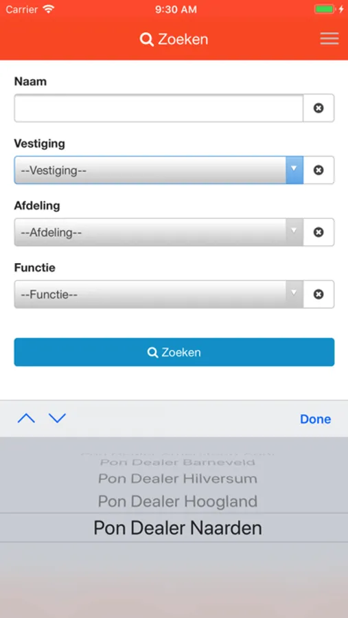 - Uitgebreid zoeken op functie, afdeling en vestiging