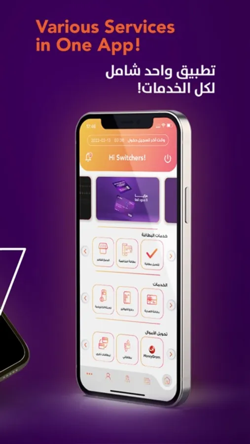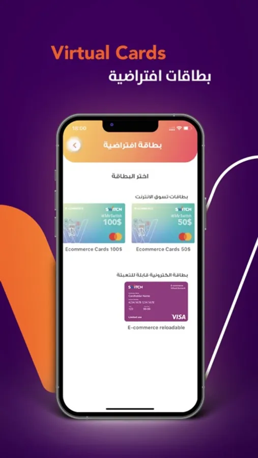 "Your one stop shop to a digitized cashless experience, with Switch app you can pay online, transfer money around the world, pay your bills, manage your expenses and create a virtual card with world class security"
