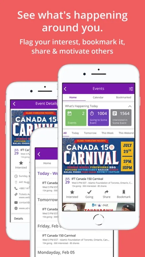 -View & share the events, flag your interest or bookmark for later view