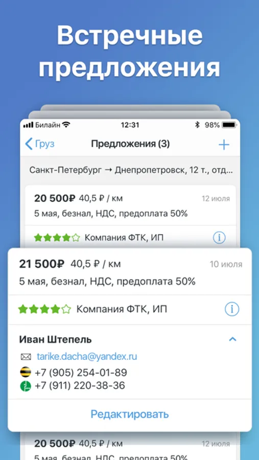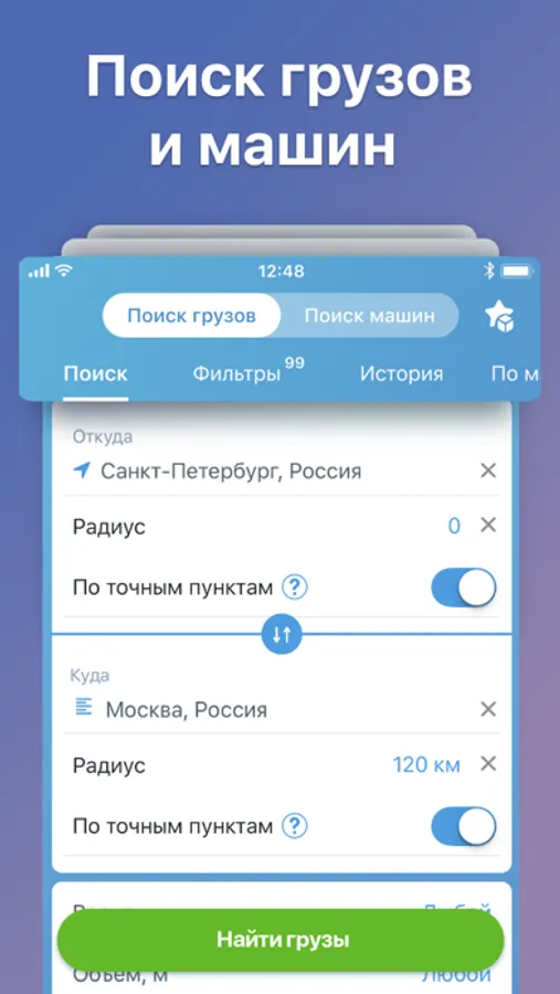 • Добавляйте грузы, чтобы перевозчики сами предлагали вам транспортные услуги.