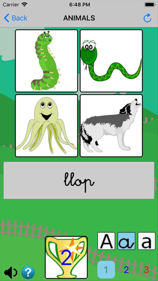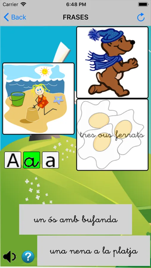 L’aplicació consta d’una sèrie de jocs per a que els nens i nenes puguin jugar i gaudir a la vegada que van aprenent i consolidant el seu procés lector d’una manera senzilla i intuïtiva.