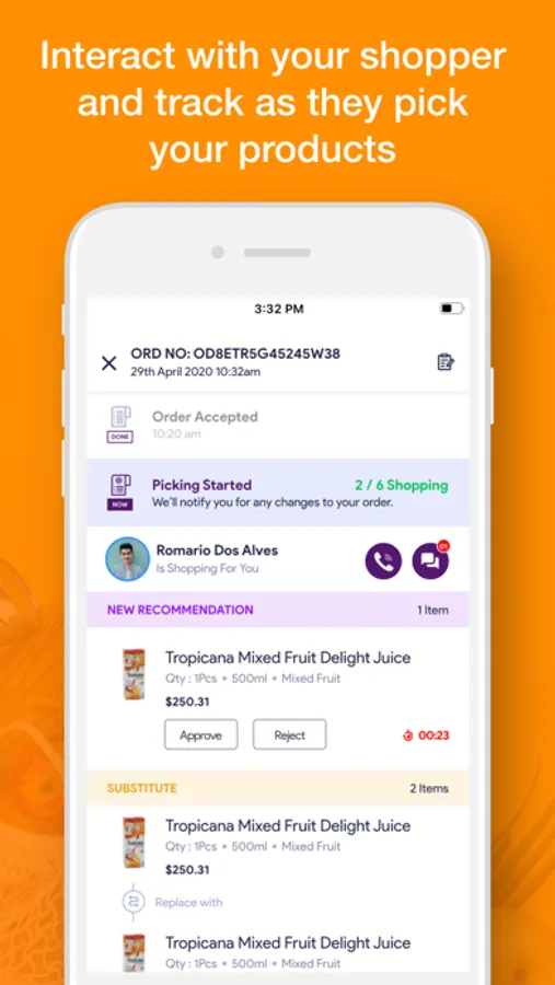 • Track your order in real time on a map with Live Track as he gets the order to you.