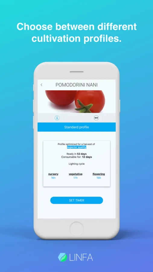 Choose the plants you will grow from our extensive catalog, sow the seedpods in the Linfa tray-pots and just fill the tank with fresh water. The App, connected to Linfa to WiFi, recognize your plants and download the appropriate growing profiles.