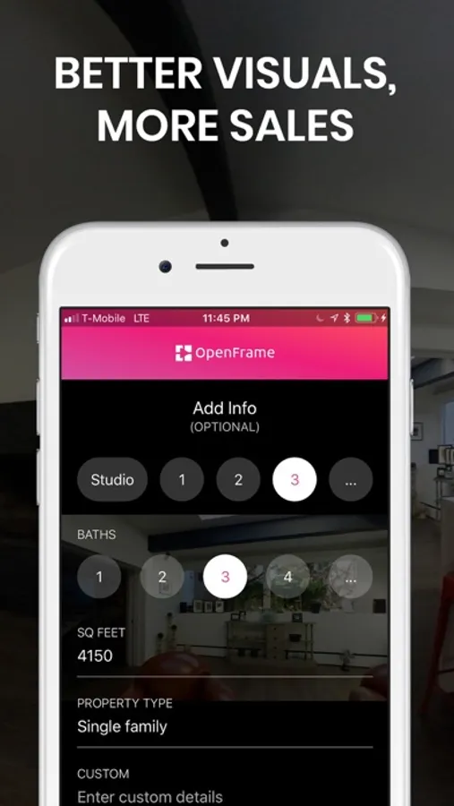 In just a couple of minutes, capture and create eye-catching real estate video tours directly from your phone. You only need to take 1 picture per room with the OpenFrame 360 camera, and the app magically creates a beautiful, immersive video - with music - in a matter of seconds!