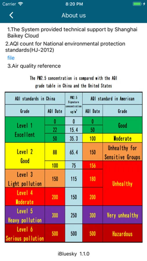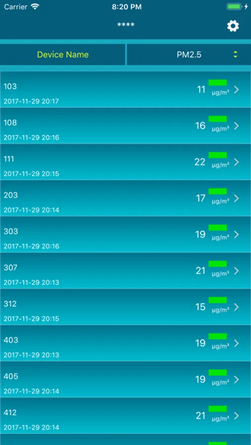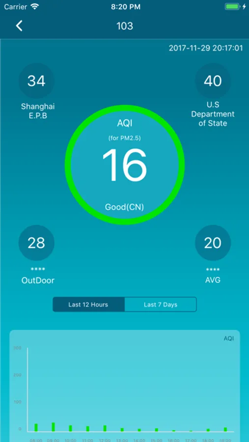 3.The user can sort the values according to the requirements. Meanwhile the user can find not only real-time values but also historical curves within 12 hours or 7 days in APP if needed. It could be switched between Chinese Standard and American Standard AQI also.