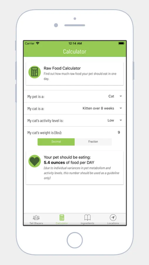 This app features an extensive pet food ingredient dictionary to help you choose a healthy food for your dog or cat, and a raw food “how much to feed” calculator.
