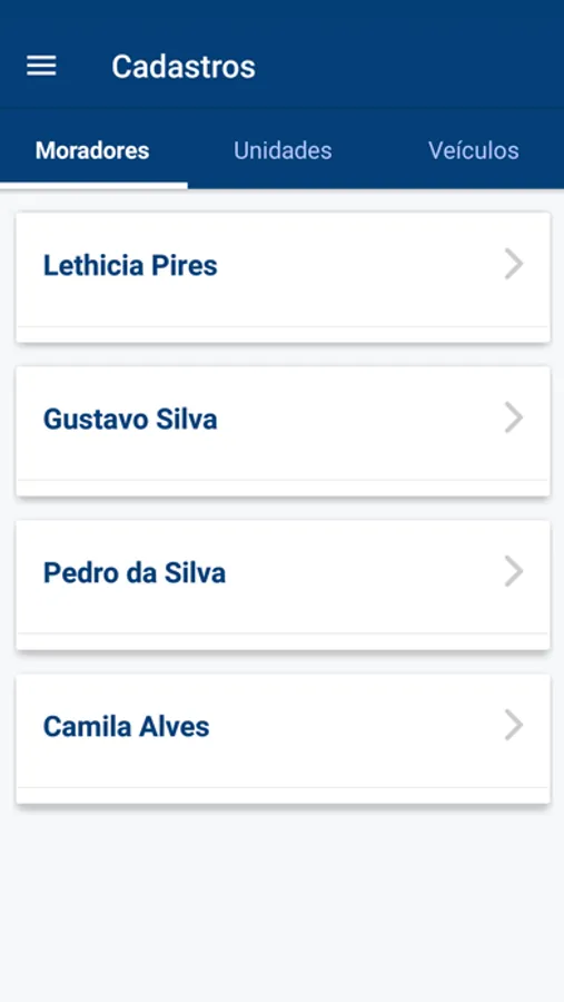 - Cadastro de Moradores, veículos...