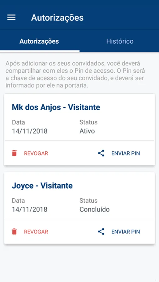 - Autorizações de Visitantes