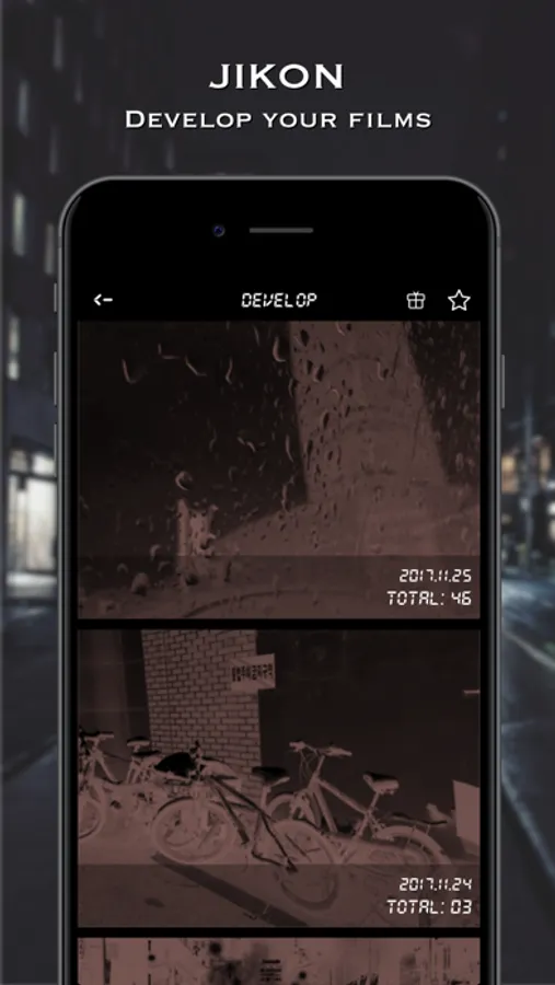 Jikon is an emotional film camera app that gives you the pleasure of developing and printing with your negative film.