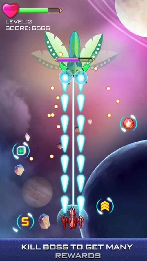 With a space ship full of weapons and modern equipment, your mission is to destroy all the monsters that are plotting to destroy your planet. They may be flies, mosquitoes, bees, butterflies, scorpions,…they will fly in flocks with very varied and unpredictable flight orbit, try to control the ship and destroy the monsters and protect your planet from their destruction.